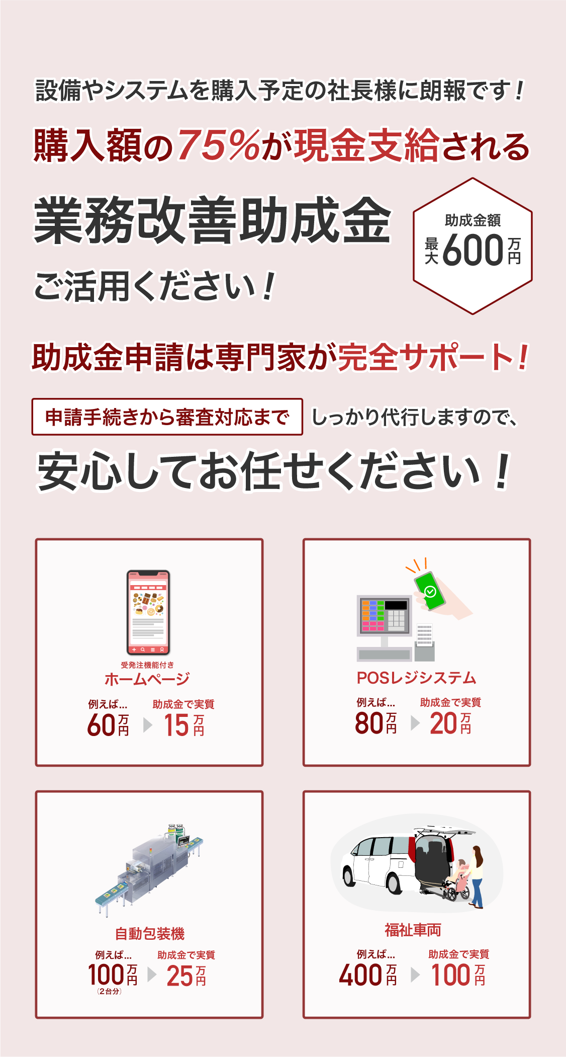 一般的なホームページ(メールフォームを使った問い合わせ機能があるだけ)では、助成金の対象になりません。より業務の効率化が見込める機能(オンラインで予約が取れる、注文から支払い決済までできるなど)の場合には、助成金の対象となり得ます。